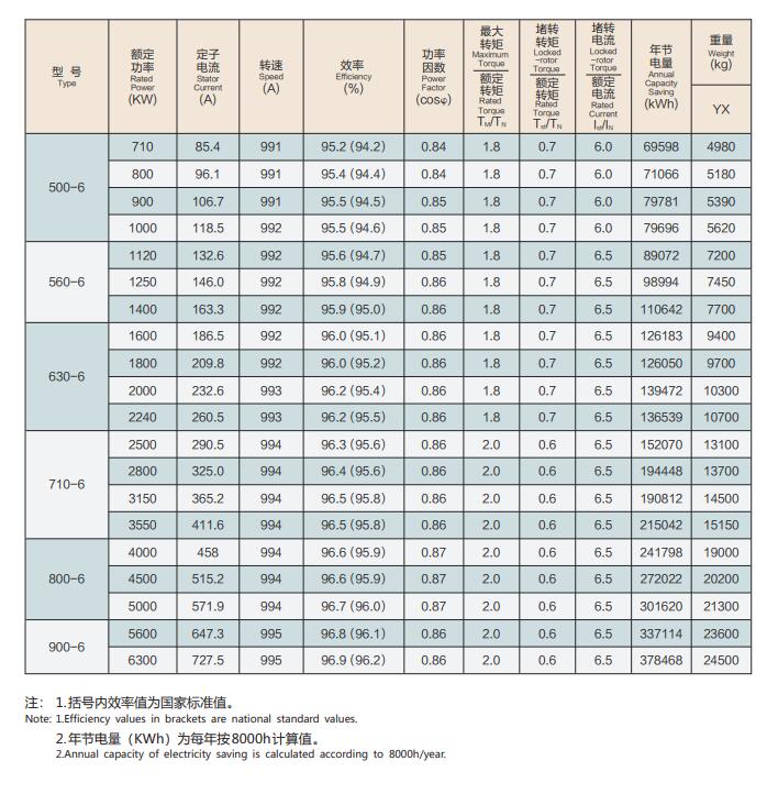 YXKK(IP44)、(IP54)系列6kV電機技術參數(shù):